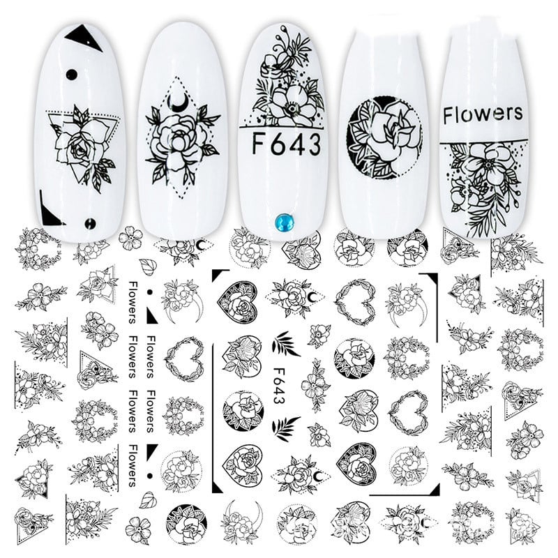 Transform your nails into a stunning canvas with our Cross-Border Nail Stickers. These exquisite 3D hot stamping decals feature an array of elegant designs, including beautiful black and white roses and charming heart shapes. Perfect for both casual and special occasions, these nail stickers will effortlessly elevate your manicure game.